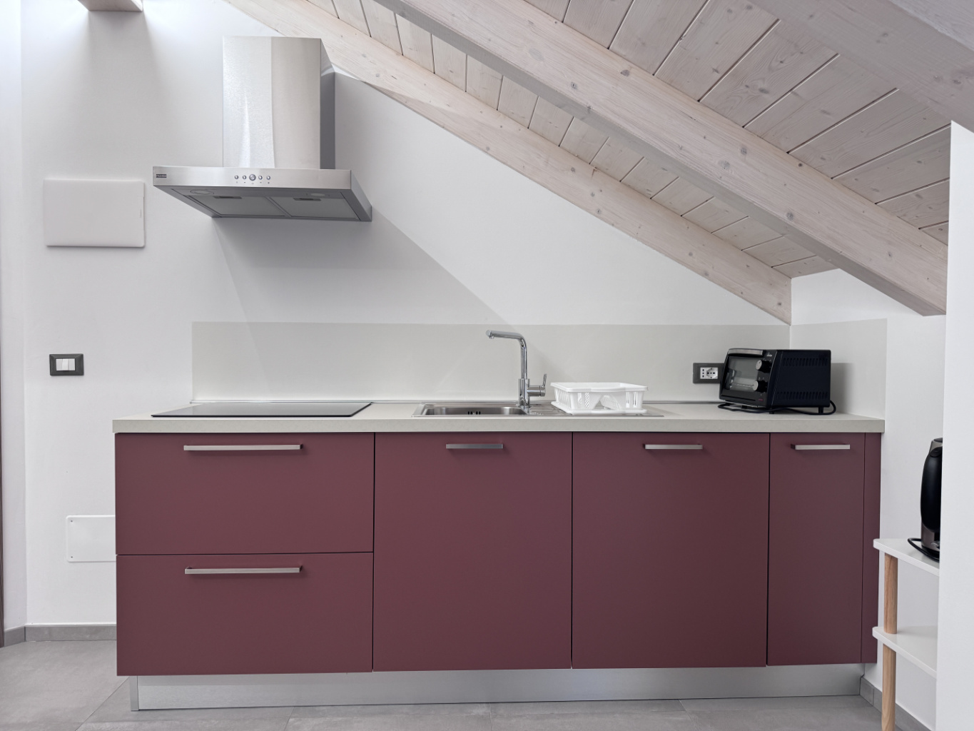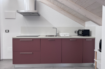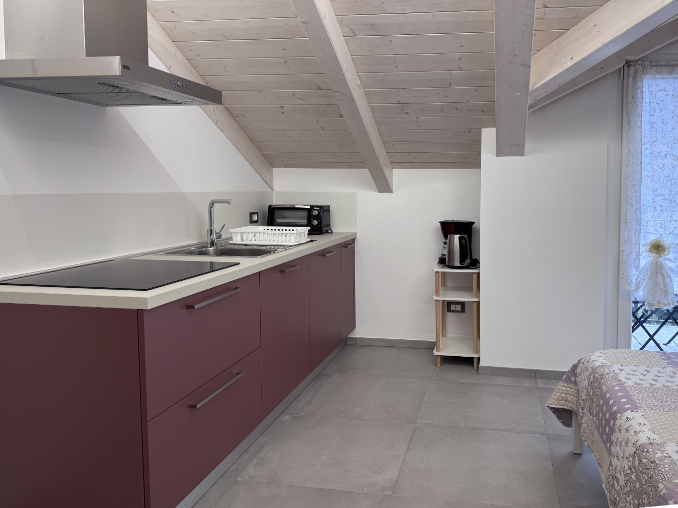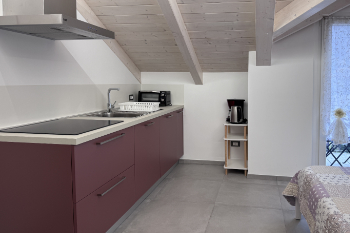Die Ferienwohnung CAMELIA ist eine kleine Studio im Dachgeschoss. Es hat ein Doppelbett, eine kleine Küche, Bad mit Dusche und eine schöne Balkon mit ein sehr hübsches Blick.