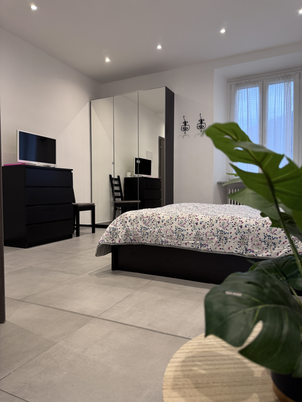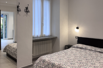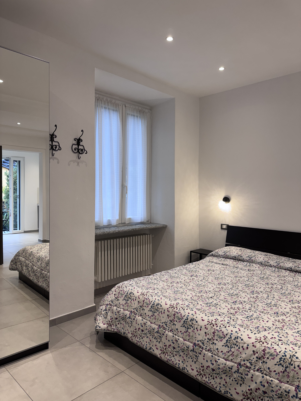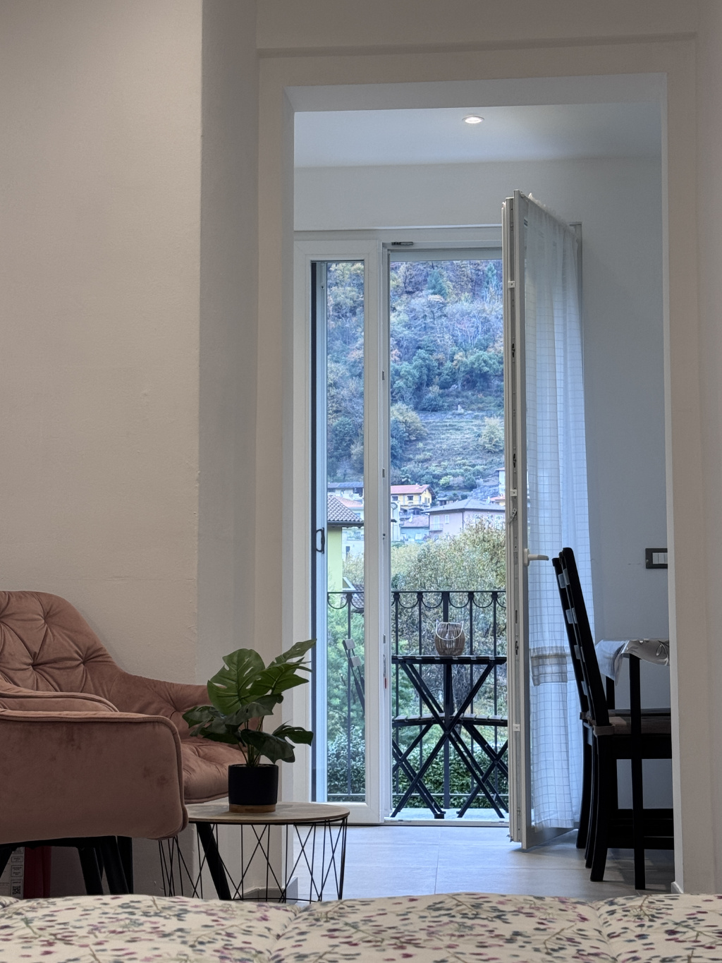 L'appartamento GLICINE è composto da camera matrimoniale, cucina e bagno con doccia. Completano l’appartamento due bei balconi con vista dul giardino e le montagne circostanti.